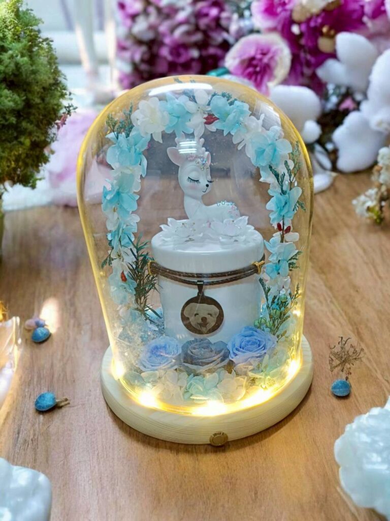 一鹿有你陶瓷骨灰罐 「一鹿有你」陶瓷骨灰罐頂端有優雅的小鹿守護,搭配柔和花瓣與珠飾,展現溫柔與祝福。不論是純白、淡粉還是夢藍,每一個配色都像是為牠量身定做。象徵「一路有你,一鹿陪伴」💕,讓離別也充滿溫柔的儀式感。 ▶ 雷射雕刻吊牌可選擇寶貝照片,我們精雕成圓牌吊飾,溫柔掛在罐身,像是牠一直陪在你身邊。 ✦ 一鹿有你陶瓷骨灰罐珍藏價|NT$ 3,200 元 骨灰罐容量500ml 一鹿有你骨灰罐尺寸10×10×11公分 顏色:白,粉,藍 顏色 白, 粉, 藍